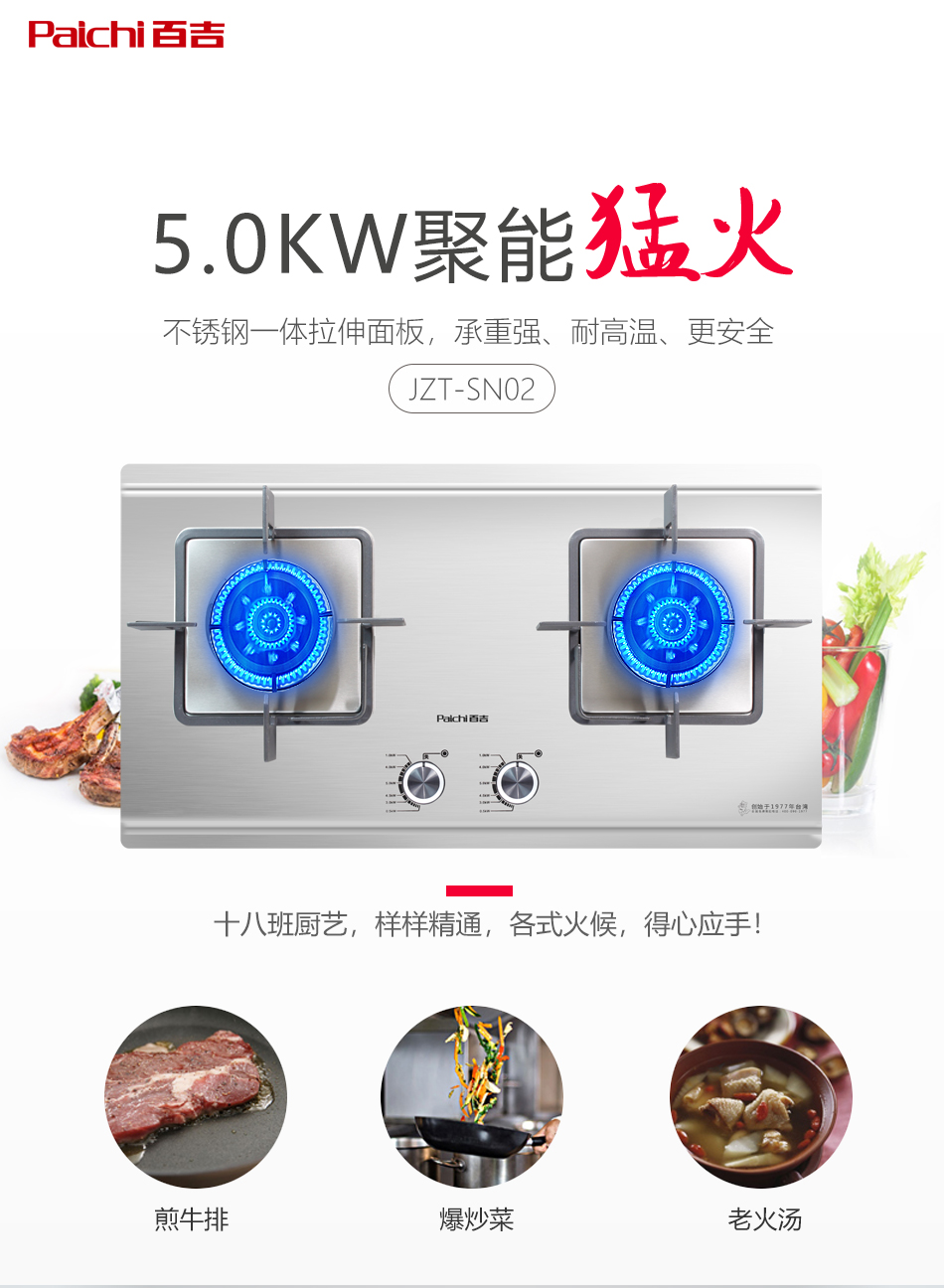5.0kW大火力 帶熱電偶熄保護裝置 不銹鋼面板